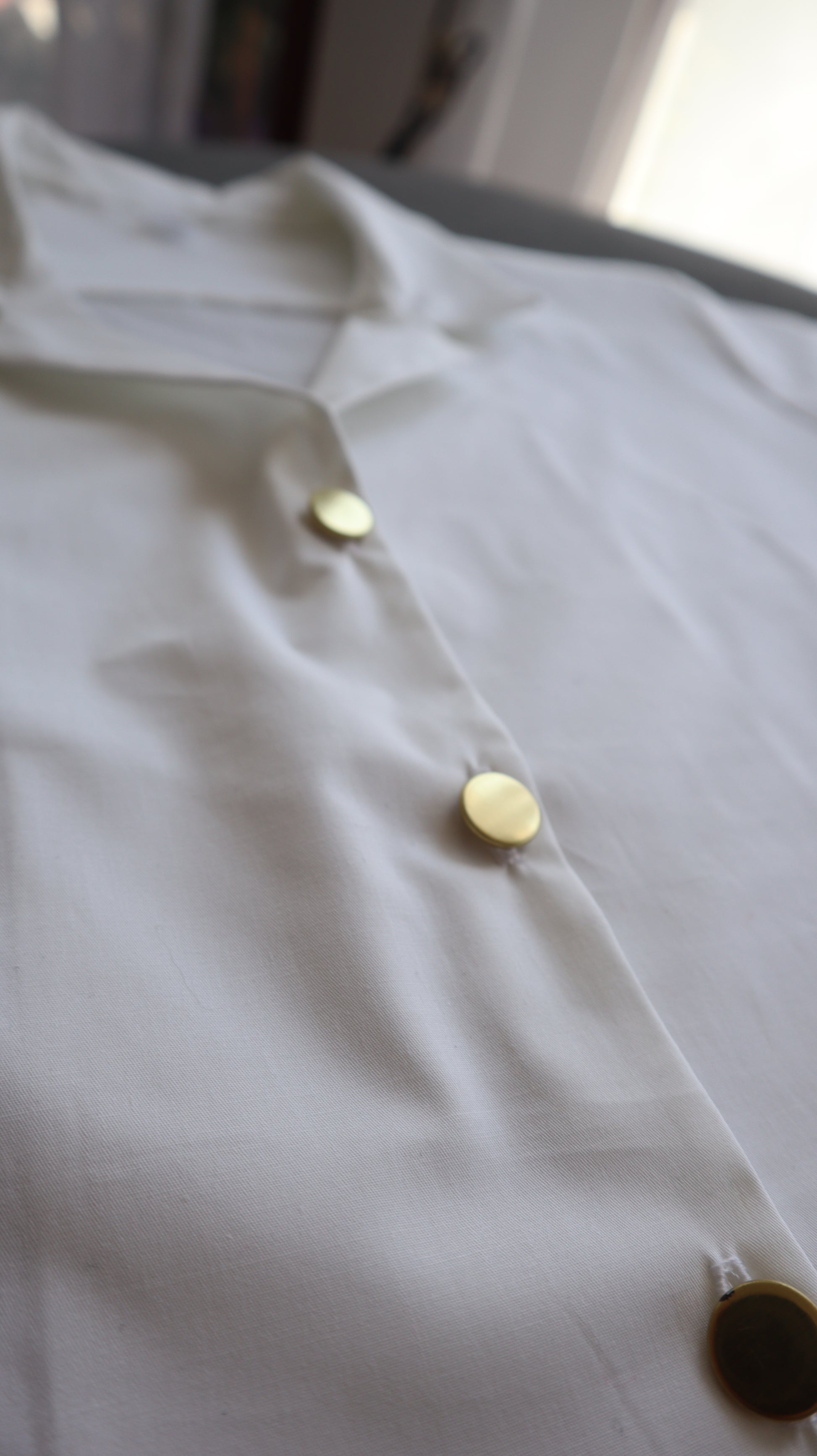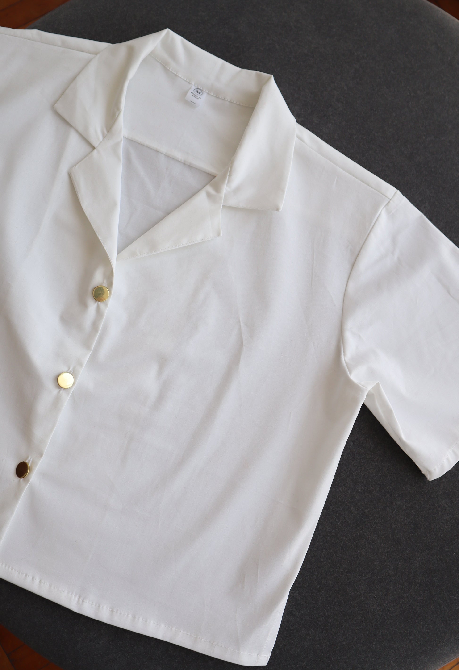 Blusa manga corta hecha de algodón de mediano grosor. Muy estructurada.