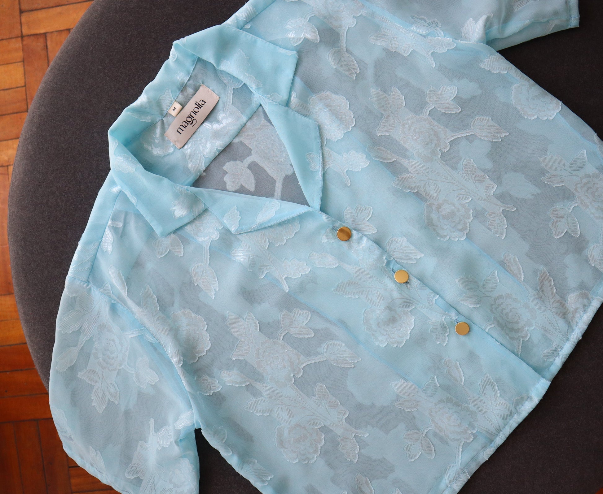 Blusa Berta hecha a partir de gasa devoré, semi transparente.