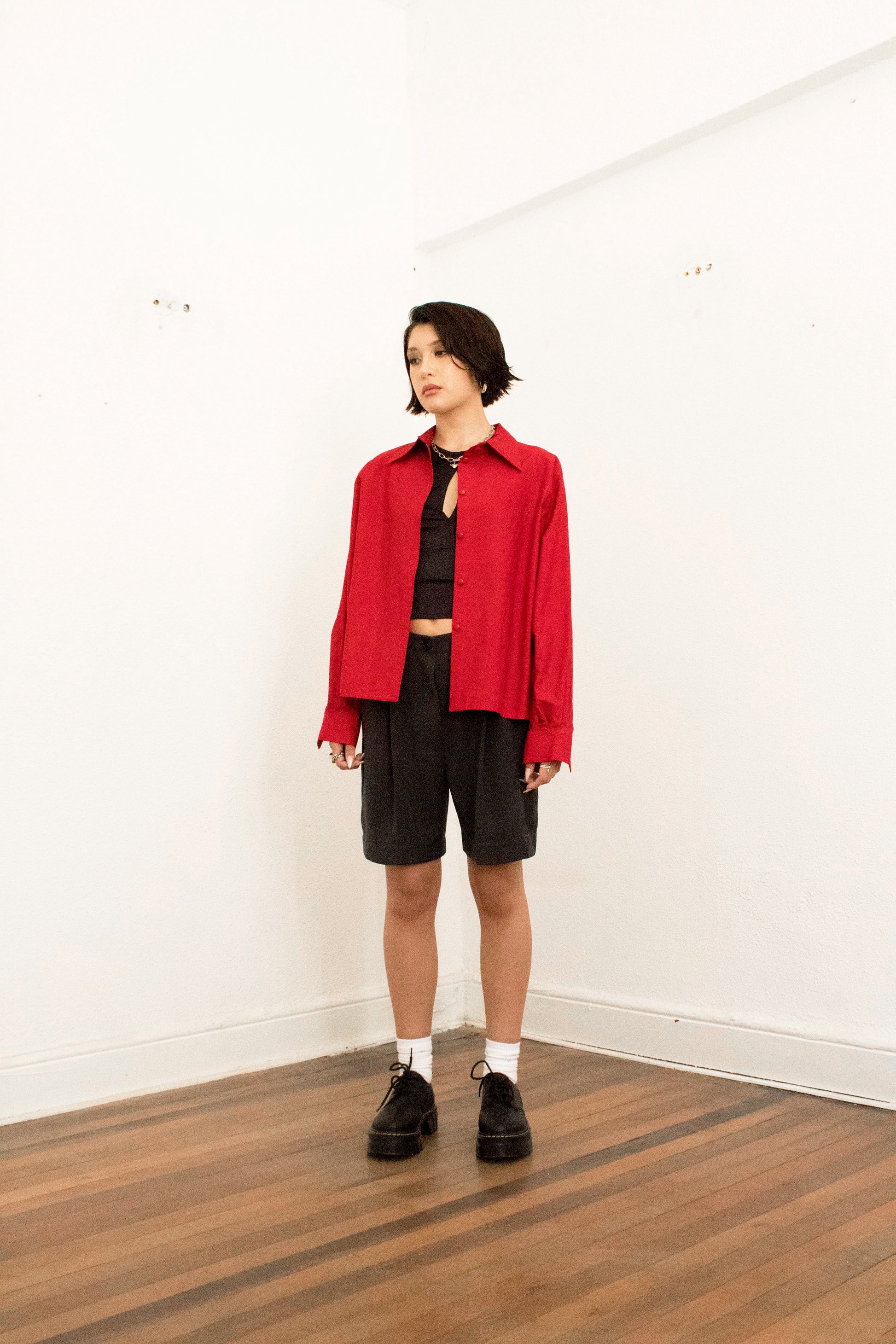 Camisa de calce oversize de algodón turco en rojo. En talla SM y ML.