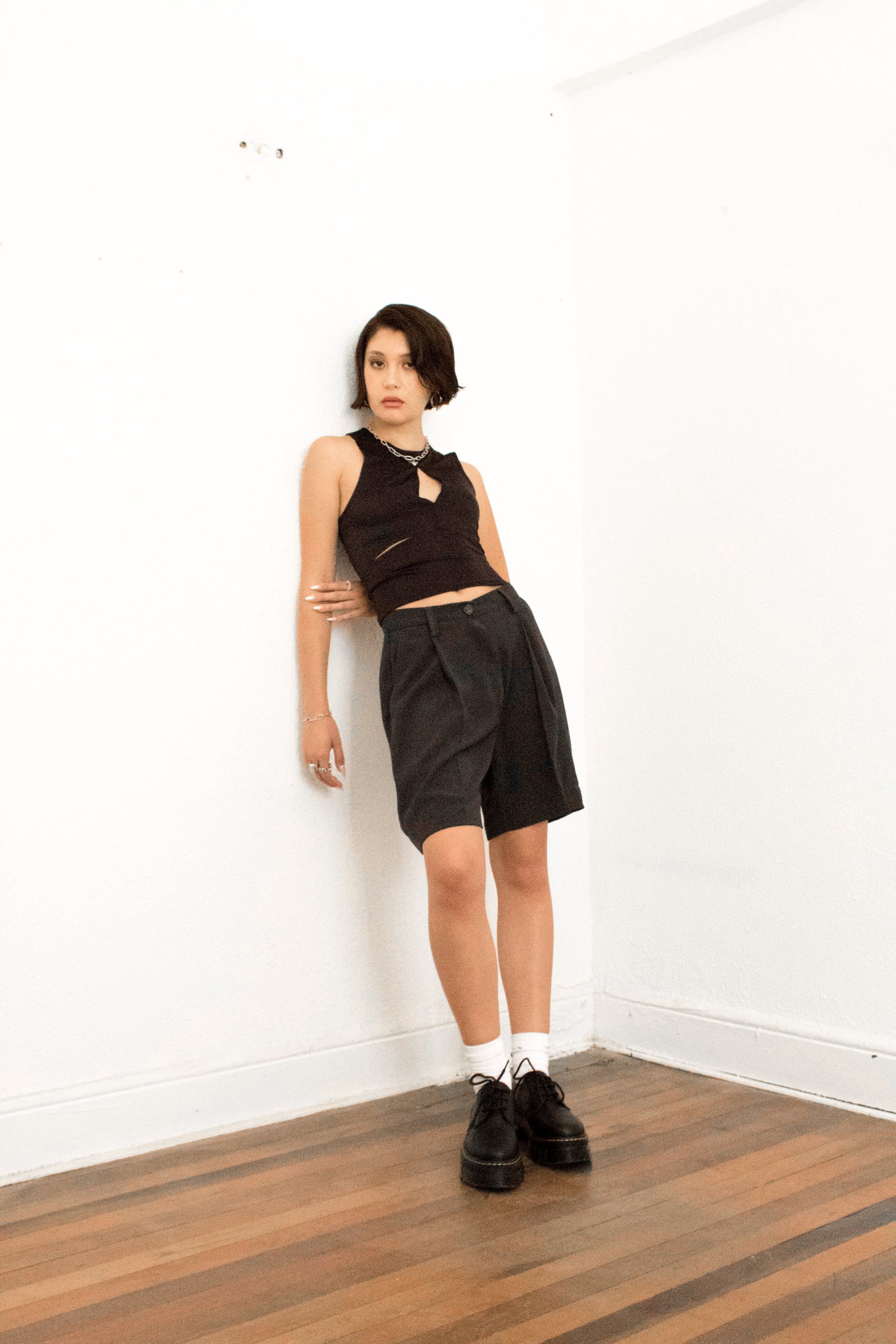 Top hecho de lycra, tela elasticada. Tiene cortes en escote y a los costados.